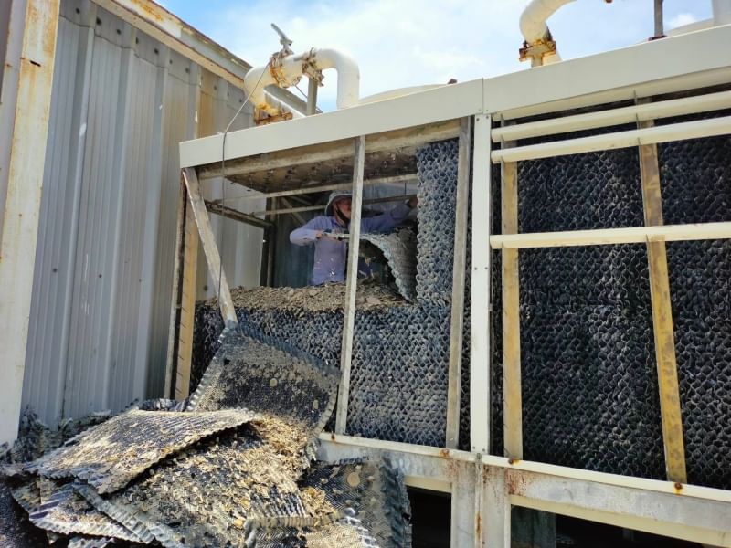 อัพเดตผลงานเปลี่ยน Filler PVC เเบบเเขวนเเละทาสีใหม่ของคูลลิ่งเทาเวอร์ยี่ห้อ profress ขนาด 225 RT x 2 Cells พร้อมขน Filler เก่าออกไปทิ้งให้ลูกค้าที่ Global House สาขาศาลายา