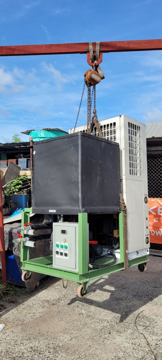 อัพเดตผลงาน ลูกค้าเช่าชิลเลอร์ 3 ตัน เพื่อไปทดสอบกับ AHU ในห้องปรับอากาศ ซึ่งเป็น Package AirCooled Chiller ในชุดมี pump เเละถังน้ำเย็นในตัวครับ ยกไปตั้งหน้างานเเละต่อท่อน้ำไปเเละน้ำกลับ ท่อน้ำเติมเเละเสียบปลั๊กไฟใช้งานได้เลย สะดวกเเละง่ายในการติดตั้งเพื่อทดสอบใช้งานครับ